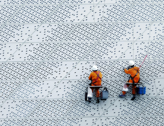 Glasfassadenreinigung, Pflege von Metallflächen, Detaillierte Reinigung von Aluminiumplatten.